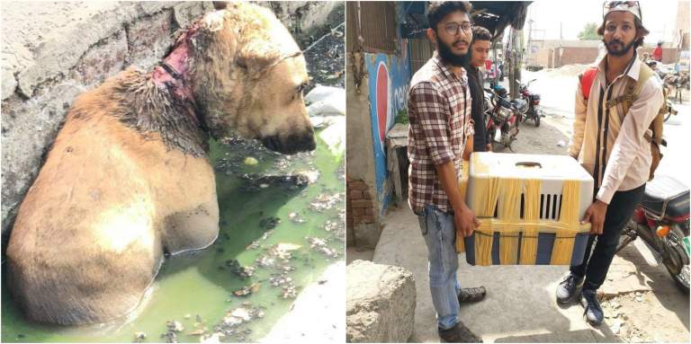‘Hero’ Karachiites save injured dog from gutter