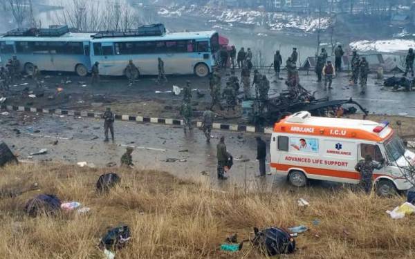 بھارتی میڈیا کے مطابق ضلع پلوامہ کے علاقے اوانتی پورہ میں جموں سے سری نگر جانے والےسی آر پی ایف کے قافلے میں70 سے زیادہ گاڑیاں گذر رہی تھیں کہ اچانک خود کش دھماکہ ہو گیا ،قافلے میں2500 اہلکار شامل تھے  ،دھماکے سے فوجیوں کو لے جانے والی تین بسیں مکمل طور پر تباہ ہو گئیں اور ہر طرف تباہی  پھیل گئی ۔