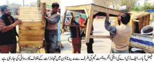 تفصیلات کے مطابق انسپکٹرز اسلم انصاری، قیصر سلیمان ودیگر سٹاف پر مشتمل ایف ڈی اے کی اینٹی انکروچمنٹ ٹیم نے مدینہ ٹاؤن میں تجاوزات کے خلاف کارروائی کی اور مجاہد ہسپتال کے گرد ونواح اور دیگر عوامی جگہوں پر کاروباری سامان کے ذریعے کی گئی تجاوزات کا صفایا کر کے گزرگاہوں کو صاف کر دیا گیااور موقع پر موجود سامان اٹھا کر قبضہ میں لے لیا۔ تجاوزات میں ملوث دکانداروں کے خلاف چالان کر کے سپیشل جوڈیشل مجسٹریٹ کی عدالت کو بھجوا دیئے گئے۔ دکانداروں، ریڑی چھابڑی اور خوانچہ فروشوں کو تنبیہہ کی گئی ہے کہ وہ تجاوزات کرکے عوامی راستوں کو روکنے یا دیگر رکاوٹیں پیدا کرنے سے اجتناب کریں بصورت دیگر باز نہ آنے پر ان کے خلاف فوجداری مقدمات بھی درج کروائے جا سکتے ہیں۔