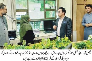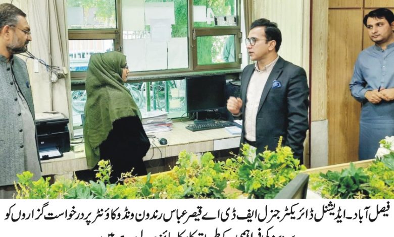 ایڈیشنل ڈائریکٹر جنرل ایف ڈی اے قیصر عباس رند کا ون ونڈو کائونٹر کا دورہ، سائلین سے خصوصی ملاقات