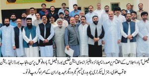 فیصل آباد (94 نیوز سٹی رپورٹر) پنجاب بورڈز فیڈریشن کا اہم اجلاس تعلیمی بورڈ فیصل آباد میں صدر ایمپلائز ویلفیئر ایسوسی ایشن تعلیمی بورڈ فیصل آباد و فوکل پرسن پنجاب بورڈز فیڈریشن ثاقب علوی کی صدارت میں ہوا، اجلاس میں جنرل سیکرٹری چوہدری نسیم گجر اور پنجاب بھر کے تعلیمی بورڈز کے صدور، جنرل سیکرٹریز اور نمائندگان نے شرکت کی۔ اجلاس میں پیش کردہ ایجنڈا پر فیڈریشن کی قیادت پر مکمل اعتماد کا اظہار کیا گیا۔