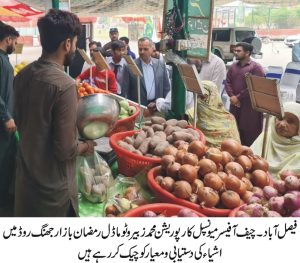 Faisalabad(94 news)On the instructions of Commissioner Salut Saeed, Chief Officer Municipal Corporation Muhammad Zubair Watto visited Model Ramzan Bazarjhang Road and checked the prices and quality of vegetables and fruits provided at the Agriculture Fair Price Shop. On the occasion, he inquired from the buyers about the arrangements of Model Ramzan Bazaar and the relief provided. He said that quality items are available to customers in both the model Ramadan bazaars of the city and the large number of customers buying them is a reflection of the provision of quality items in the model Ramadan bazaars.