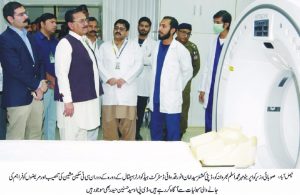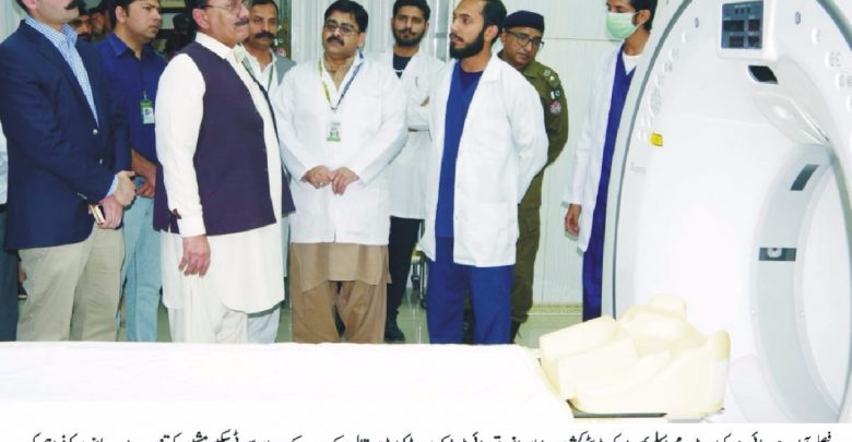 Faisalabad(94 news) وزیر اعلٰی پنجاب سردار عثمان بزدار کی ہدایت پر صوبائی وزیر کوآپریٹو مہر محمد اسلم بھروانہ نے ڈسٹرکٹ ہیڈ کوارٹرز ہسپتال چنیوٹ کادورہ اور مختلف شعبوں کا معائنہ کیا۔ ڈپٹی کمشنرچنیوٹ سید امان انور قدوائی،ڈی پی اوسید حسنین حیدر اور محکمہ صحت کے افسران بھی موجود تھے۔صوبائی وزیر نے ہسپتال میں نصب کی گئی نئی سی ٹی سکین مشین بھی چیک کی اوراس سہولت کو مریضوں کے لئے نعمت قرار دیا۔انہوں نے مریضوں کی آسائش کا خیال رکھنے کی تاکید کرتے ہوئے ڈپٹی کمشنر سے کہا کہ وہ ہسپتال کی مانیٹرنگ کا عمل جاری رکھیں اور اعلی نظم ونسق ہمہ وقت برقرار رہنا چاہیے۔انہوں نے کہا کہ حکومت پنجاب نے صحت کے شعبہ پر خصوصی توجہ مرکوز کر رکھی ہے اورطبی سہولتوں میں وسعت لانے کے لئے اقدامات کئے جارہے ہیں۔ انہوں نے ہسپتال میں زیر علاج مریضوں کی عیادت کرکے ان کی جلد صحت یابی کی دعا بھی کی۔ڈپٹی کمشنر نے ہسپتال کی کارکردگی کے حوالے سے آگاہ کیا۔