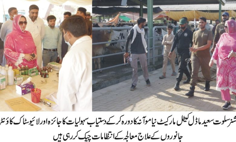 فیصل آباد، کمشنر سلوت سعید کا منڈی مویشیاں کا دورہ، سہولیات کا جائزہ لیا، خریداروں سے بھی ملیں اور معلومات حاصل کیں