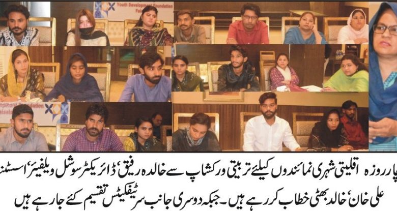 Faisalabad(94 news) Youth Development Foundation organized a four-day training workshop for Minority Civic Agents in which Minority Civic Agents from 16 Union Councils participated. Khaleda Rafique Director Social Welfare appreciated YDF's commitment to addressing the issues of service delivery to minorities and reiterated full support for their commitment. Parish Priest Reverend Father Khalid Rasheed Asi emphasized the importance of Right to Information and thanked the Punjab Government for its support to the backward class. Atif Ali Khan did Lahore and Faisalabad 16 In Union Councils (MCAs)highlighted the empowerment initiatives, equipping them with the necessary skills of governance and social accountability. Mr. Muhammad Taseef DSP informed the participants about minority rights and against prejudices, which are important for improving the society, Gulnaz in-charge protection center appreciated the community action of the participants and encouraged collective efforts for social betterment. Nargis Sub-Inspector imparted awareness among the participants about minority rights and reducing prejudice. Gurmeet Singh, Social Activist, Lok Vihar Organization, emphasized to the participants the importance of unity and cooperation in building a harmonious society and the importance of minority civic representatives in carrying out these initiatives. (MCAs) This appreciation highlights the importance of participatory governance and community empowerment.