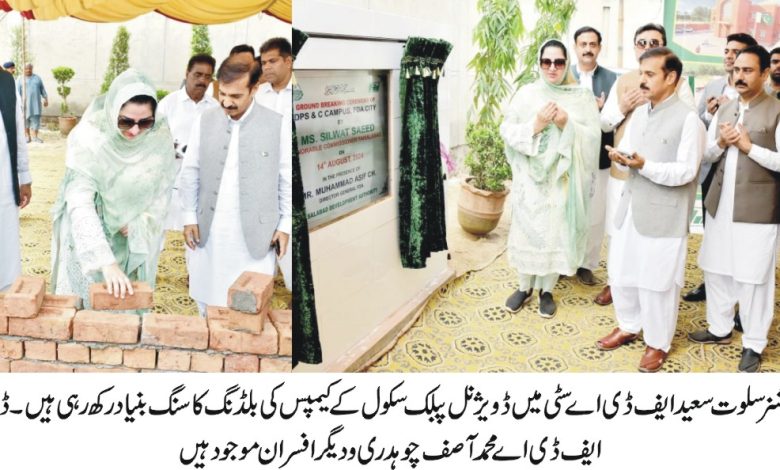 کمشنرفیصل آباد سلوت سعید نے یوم آزادی کے تاریخی و یادگار دن کے موقع پر ڈی پی ایس کیمپس کی عمارت کی تعمیر کی افتتاحی تختی کی نقاب کشائی اور اینٹ لگا کر سنگ بنیاد رکھا۔ڈائریکٹر جنرل ایف ڈی اے محمد آصف چوہدری بھی کمشنر کے ہمراہ تھے ۔ جبکہ چیف انجینئر ایف ڈی اے مہرایوب نے بلڈنگ کی تصریحات اور منصوبے پر عملدرآمد کی پیش رفت کے بارے میں بریفنگ دی ۔ ایڈیشنل کمشنر کوآرڈینیشن مصور خاں نیازی ،ایڈیشنل کمشنر آصف حیات، اسسٹنٹ کمشنر جنرل ڈاکٹر عابد سیال ، ڈائریکٹر فنانس ایف ڈی اے یاسر اعجاز چٹھہ و دیگر افسران اس موقع پر موجود تھے۔ کمشنر سلوت سعید نے ایف ڈی اے سمیت تمام افسران کوجدید ترین عمارت کی تعمیر کے آغاز پر مبارک باد دی اور کہا کہ ڈویژنل انتظامیہ باکفایت اخراجات میں معیاری اور بامقصد تعلیم کے فروغ کیلئے کوشاں ہے اس مقصد کیلئے مختلف علاقوں میں پبلک سکولوں کا جال بچھایا جا رہا ہے۔انہوں نے امید ظاہر کی کہ ڈی پی ایس کی اس جدید ترین عمارت کی بدولت طالب علموں کو باسہولت، آرام دہ اور پُرسکون تعلیمی ماحول میسر آئیگا جو ان کی علمی صلاحیتوں میں اضافے کا باعث ہوگا۔ انہوں نے کہا کہ مستقبل میں اس کیمپس میں مزید توسیع کرکے اسے کالج کی سطح پر لائیں گے تاکہ طالب علموں کو اعلیٰ تعلیم کے مواقع ایک ہی جگہ پر دستیاب ہوں۔ کمشنر نے کہا کہ اس کیمپس کے قیام سے قریبی رہائشی کالونیوں کے بچوں کو ان کی دہلیز پر معیاری تعلیمی سہولتیں میسر آئینگی اور تعلیمی ترقی کے حوالے سے ڈویژنل انتظامیہ کے اہم مقاصد پورے ہوں گے۔ انہوں نے عمارت کے تعمیراتی مراحل کی مکمل نگرانی کرنے اور مقررہ مدت میں تکمیل کو یقینی بنانے کی ہدایت کی اور کہا کہ منصوبے کے اعلیٰ تعمیراتی معیار کو مثالی اور فن تعمیر کا شاہکار ہونا چاہئے۔ بریفنگ کے دوران کمشنر کو بتایا گیا کہ اس کیمپس کی بلڈنگ گرائونڈ اور فرسٹ فلورز سمیت مجموعی طور پر چودہ کلاس رومز ، چار جدید آئی ٹی لیب دو کامن رومز ،کثیر المقاصد ہال، کانفرنس روم، سٹور روم ڈسپنسری، ڈے کیئر سنٹر,30 It will consist of washrooms and pleasant lawns. Director General FDA Muhammad Asif Chaudhry thanked Commissioner Salwat Saeed for laying the foundation stone on the historic occasion of Independence Day and said that this memorable moment will be an important part of the history of this magnificent building. He assured that he will try to complete the construction before the stipulated period while fulfilling the confidence of the divisional administration regarding the quality of construction so that this beautiful building can be available for educational activities soon. He said that the establishment of DPS campus will be a milestone in the further development of FDA City, thanks to which the splendor of this residential scheme will increase. On this occasion, prayers were prayed for the development and prosperity of the beloved country, blessings and successful completion of the project.