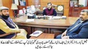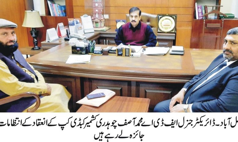 Faisalabad(94 news)On the occasion of Kashmir Day ”Kashmir Kabaddi Cup” In this regard, Kabaddi's brilliant match will be held on February 5 at the Sports Ground of AFDA City, with four eminent teams of Kabaddi participating, including Kabaddi's national and international players. Director General FDA Muhammad Asif Chaudhry has justified the arrangements for holding the Kashmir Kabaddi Cup. On this occasion, Additional Director General FDA Yasser Ijaz Chatha, Project Director /Director State Management to Sohail Maqsood Pannas were present. Secretary General Divisional Kabaddi Association Taib Gilani informed about the details of the Kabaddi teams and the order of the matches and the necessary requirements for the excellent conduct of these events. Punjab, Sanjha Punjab Kabaddi Club, Azad Kabaddi Club UK 409 And Nankana Sahib Kabaddi Club will be played while the exhibition match will be played in Kashmir Kabaddi Club and Randhawa Kabaddi Club. He directed and said that the purpose of organizing this event on the occasion of solidarity Kashmir is to highlight the issue of Kashmir on various forums which will not only express solidarity and sympathy with the Kashmiri brothers but will also give fans a chance to see the best competition of kabaddi. -