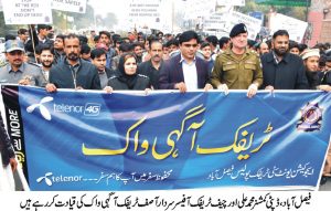 Faisalabad (94 news) ڈپٹی کمشنر محمد علی نے کہا ہے کہ ٹریفک قوانین کی پاسداری مہذب قوموں کا شعار ہے جس کی بدولت نہ صرف منظم اور محفوظ ٹریفک کو یقینی بنایا جا سکتا ہے بلکہ شاہرات پر شہریوں کے اچھے رویوں کی بھی پہچان ہوتی ہے۔ انہوں نے یہ بات سٹی ٹریفک پولیس کے زیر اہتمام ٹریفک آگہی واک کی قیادت کرتے ہوئے کہی جس میں سی ٹی او سردار آصف‘ ڈی ایس پی ٹریفک سٹی زاہدہ پروین‘ ٹریفک سٹاف‘ تاجروں‘ طالب علموں اور سول سوسائٹی کے نمائندہ افراد نے شرکت کی۔